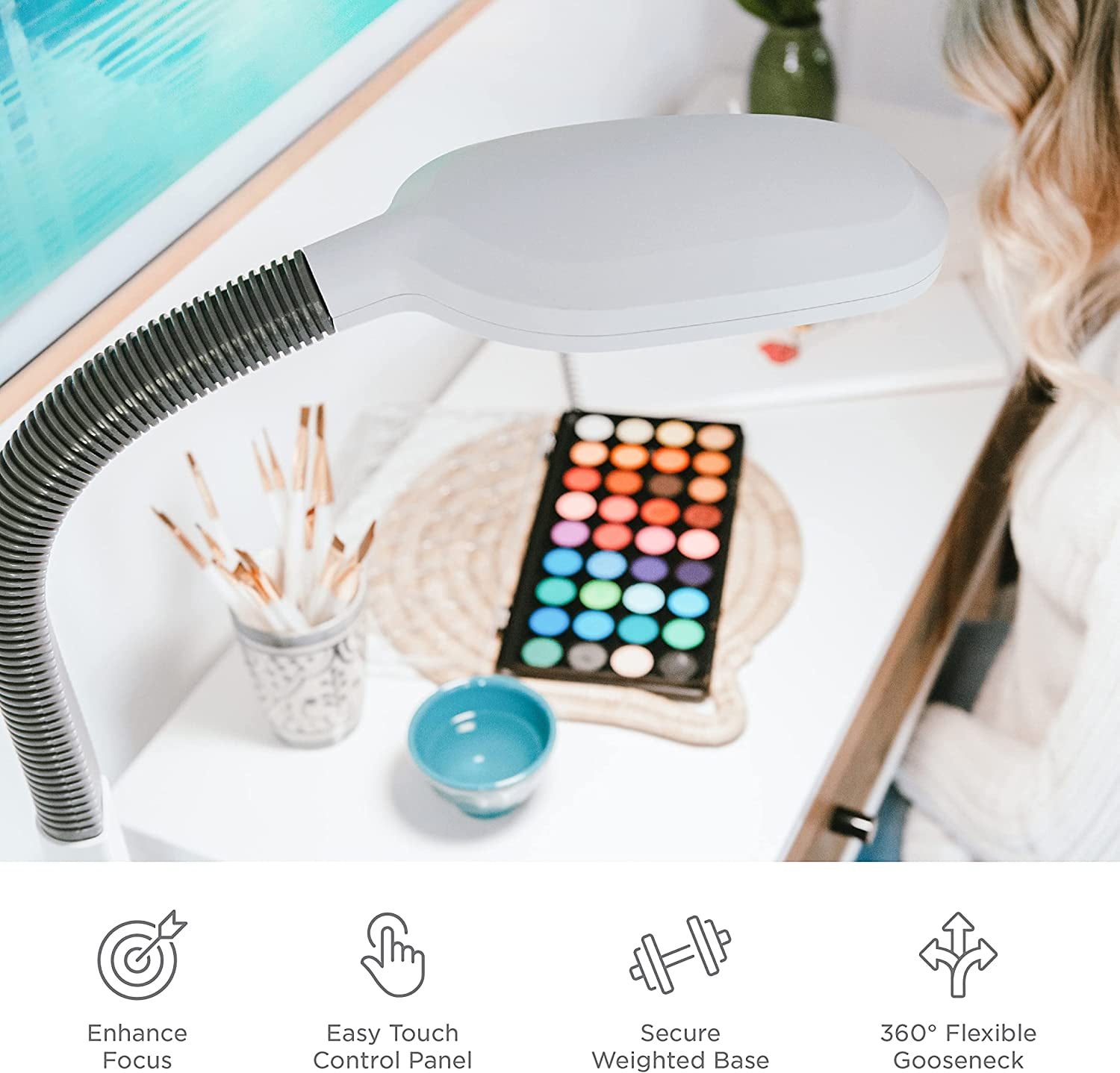 Verilux SmartLight Full Spectrum LED Desk Lamp with Adjustable Brightness, Flexible Gooseneck and Integrated USB Charging Port – Reduces Eye Strain and Fatigue – Ideal for Readers, Artists, Crafters
