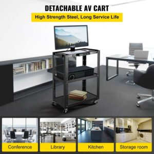 VEVOR 3 Shelf Adjustable Steel AV Cart with Power Strip 24″ x 32″, Black