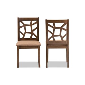 Baxton Studio Abilene Mid-Century Grey Fabric Upholstered and Walnut Brown Finished Dining Chair Set of 2