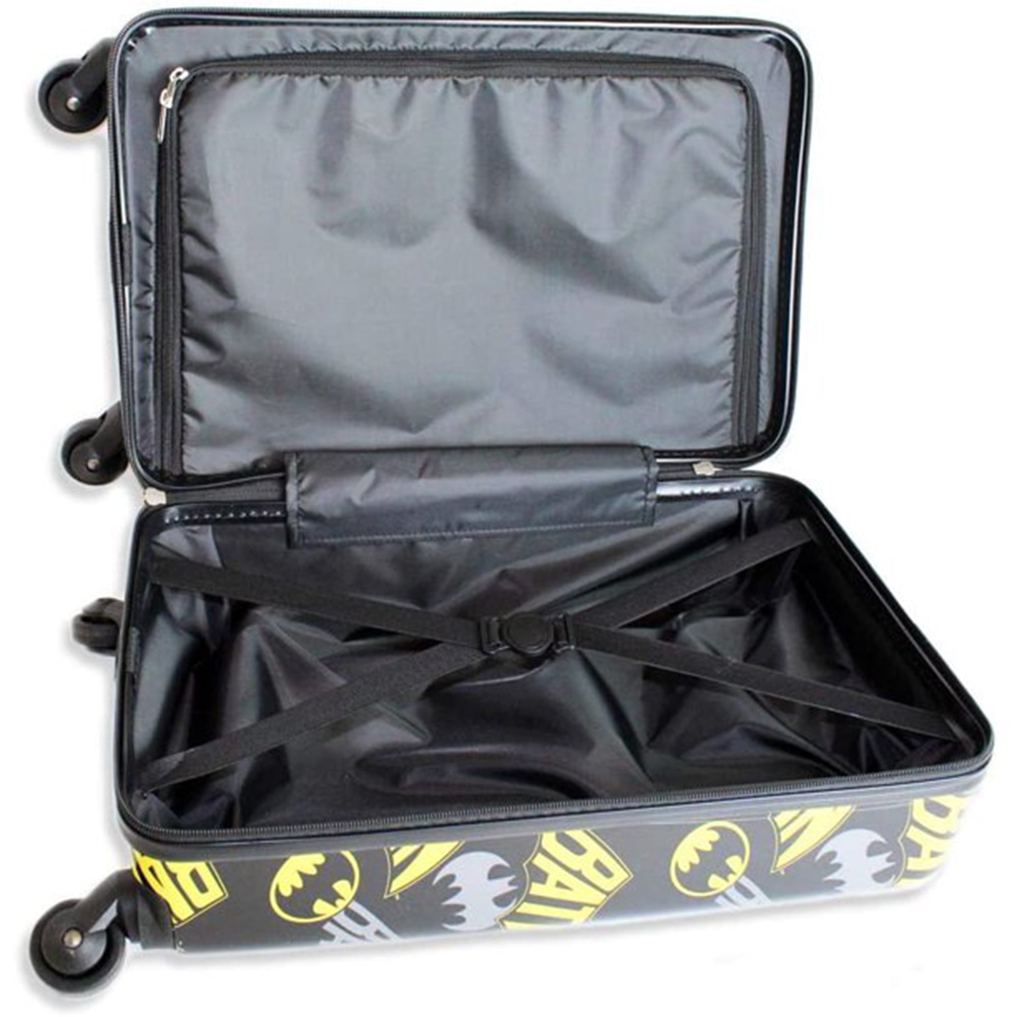 $77.39Introducing our exclusive Batman hardside suitcase, featuring an all-over print with different graphics on the front and back. This lightweight and durable carry-on is perfect for kids on the move, with four 360° rotating wheels for smooth movement and a push-button telescopic pull handle. The spacious interior includes inside secure elastic straps, a large compartment, and double zippers, all fully lined for added protection. With its bright colors and carry-on-approved design, this suitcase is the perfect gift for any young superhero fan.
