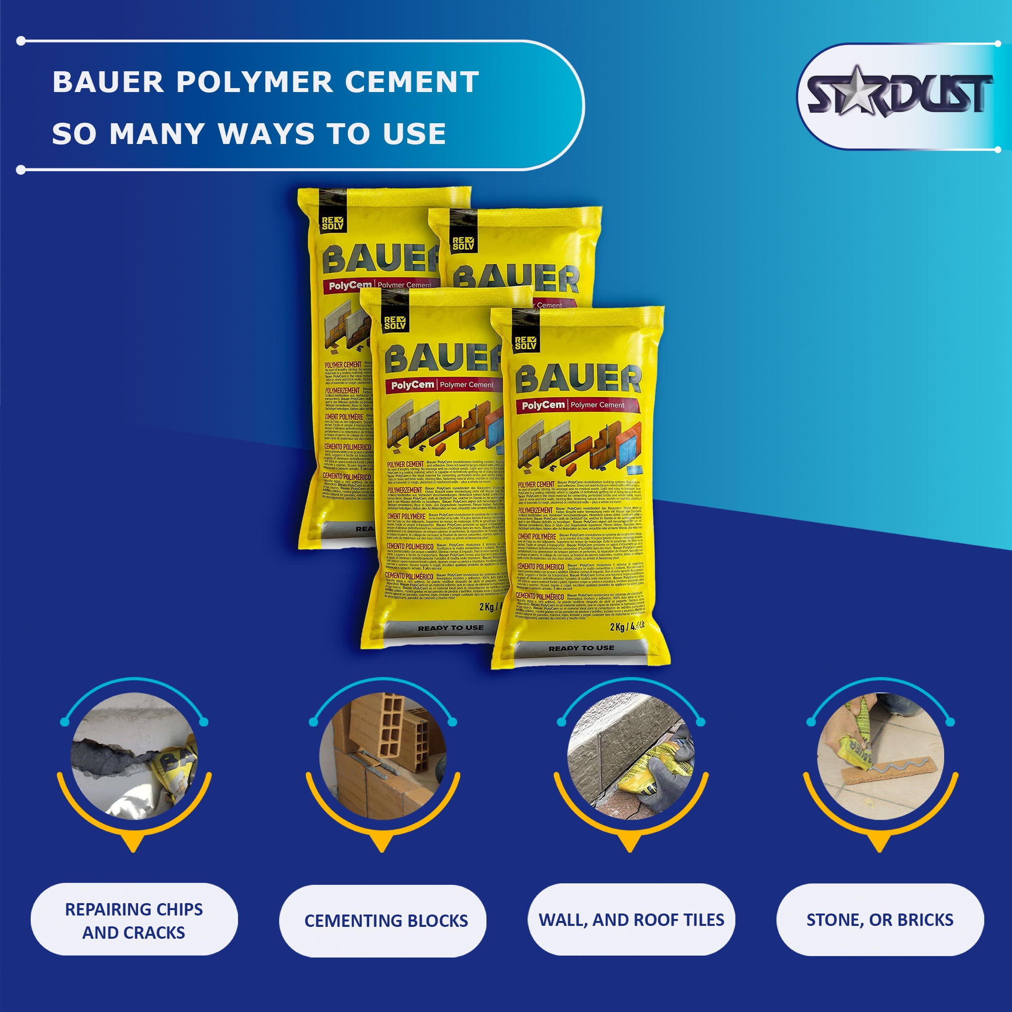 Bauer Instant Polymer Cement – Ready-to-Use, Replaces Mortar & Adhesives, 4.4lb Bag, 4 Pack