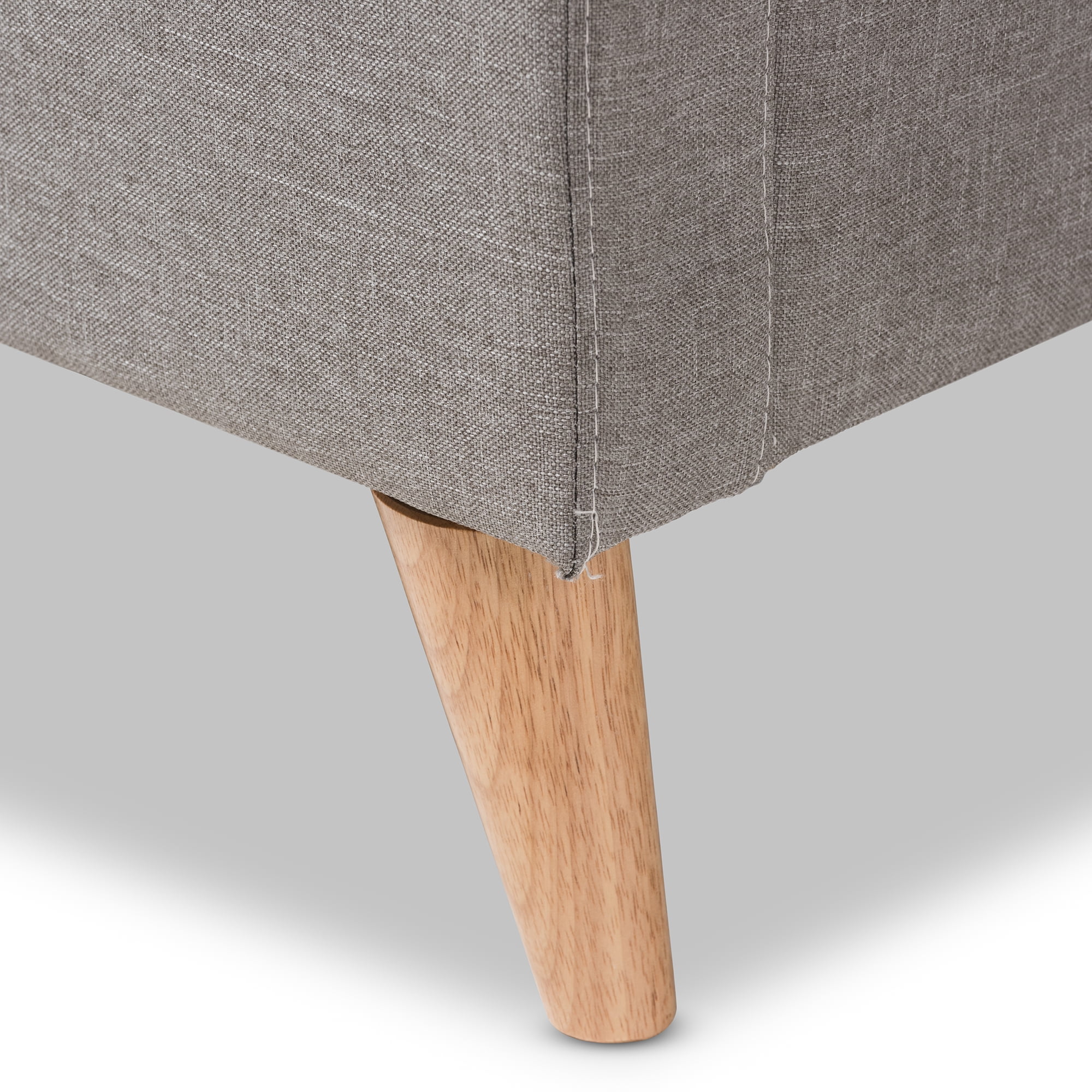 $177.18Resonate a resurgent aesthetic in your bedroom with the wingback frame and luxe upholstery of the Adelaide king size platform bed. Constructed of solid wood and plywood frame with MDF for a strong and sturdy structure, the Adelaide features wood legs for ultimate sturdiness and a superior support structure. Upholstered in quality blend of polyester fabric with resilient quality to last over the padded bed frame, the wood slats provide ample support to your mattress while the structure is screwed together for stability. Attached headboard provides a supportive backboard to your bedding as well as a stylish button-tufting feature to give indulgent good looks to your bedroom. Wingback design for mid-century modern style-lines and tapered, natural finishing legs to give resurgent accents to your contemporary aesthetic. Cool chic hue in a light grey tone for effortless style to complement your modern bedroom with its lasting good looks. Made in Malaysia, the Adelaide requires assembly.