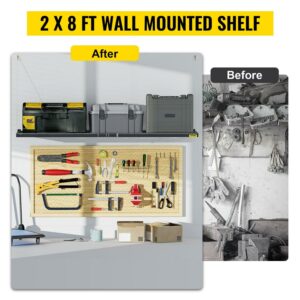 VEVOR Garage Wall Shelf 2 x 8 ft Garage Shelving Wall Mounted Steel Shelf, Garage Overheads Storage Rack, 500 LBS Weight Capacity Floating Shelves, Heavy Duty Steel Wall Shelf for Garage Black