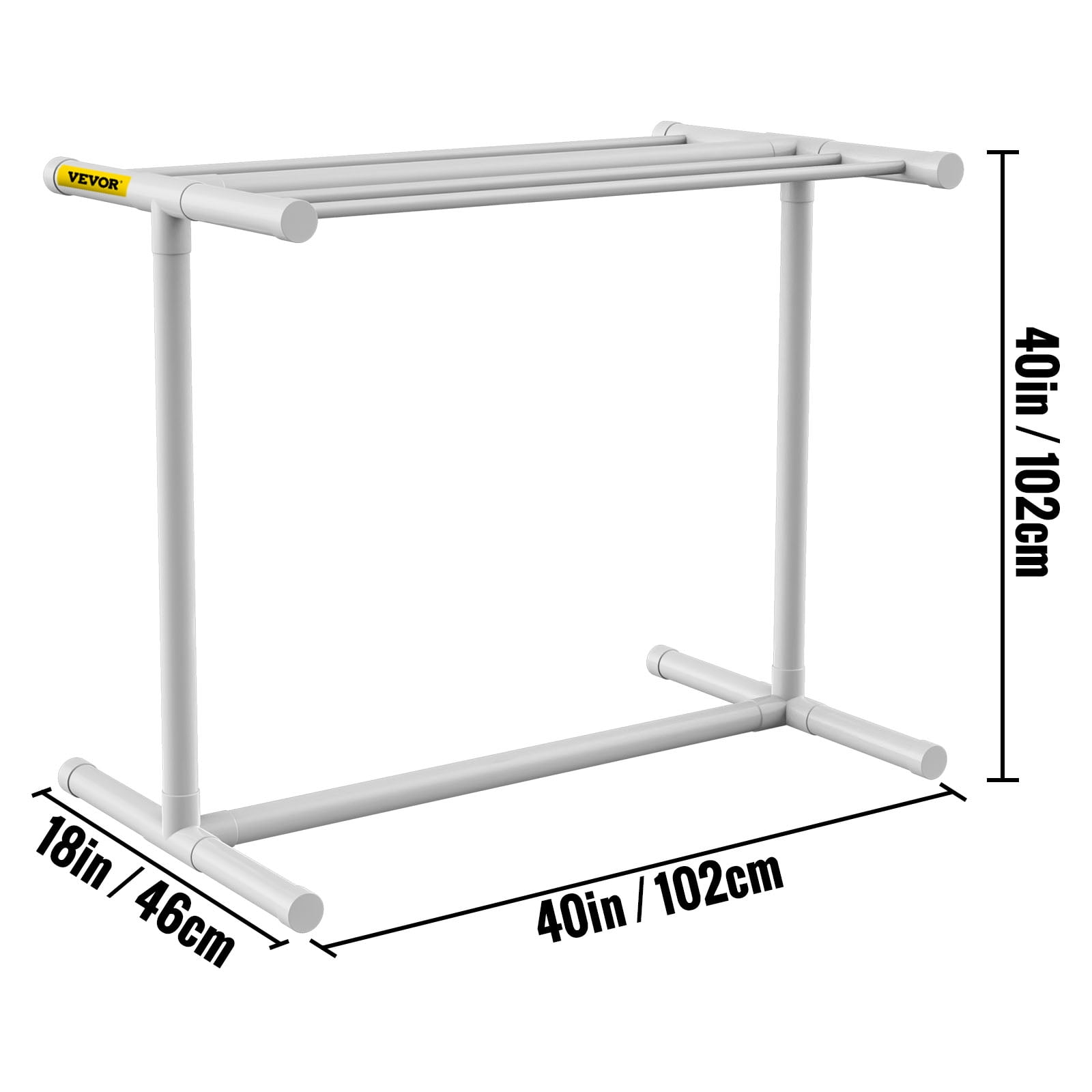 $46.43Brand Introduction VEVOR is a leading brand that specializes in equipment and tools. Along with thousands of motivated employees,VEVOR is dedicated to providing our customers with tough equipment & tools at incredibly low prices. Today, VEVOR has occupied markets of more than 200 countries with 10 million plus global members. Why Choose VEVOR? 1.Tough Quality Assurance 2.Incredibly Low Prices 3.Fast & Secure Delivery 4.30-Day Free Returns 5.24/7 Professional Customer Service Product Description Poolside Towel Rack Special T-shape Design & Furniture-grade Structure & 55 lbs Load Capacity 5 Bar Towel Rack Our functional pool towel rack provides spacious storage space for your various swimming gear. Solid PVC Structure The outdoor towel rack is durable and portable due to its PVC pipe construction, ensuring a long-term use. Large Support Base Stop worrying about the pool towel hanger falling. It has a large and sturdy support base, ensuring protection. Additional Tools for You A hanging mesh bag, a hook, and towel clips are great for storing smaller accessories like goggles or snorkels, making the pool towel rack much more functional. Easy to Install & Store Use adapters to finish the easy installation of this PVC towel rack. Also, disassembling it is effortless and non-labor intensive. Versatile Uses A pool towel holder is a perfect tool for storing swim gear indoors and outdoors. Specifications Model: VV-PTR-G5W Number of Bars: 5 Shape: T-shape Material: PVC Color: White Item Size(L x W x H): 40 x 18 x 40 in/ 102 x 46 x 102 cm Load Capacity: 55 lbs/ 25 kg Package Content 1 x Towel Rack 8 x Towel Clip 1 x Mesh Bag 1 x Hook 1 x Installation Kit 1 x User Manual