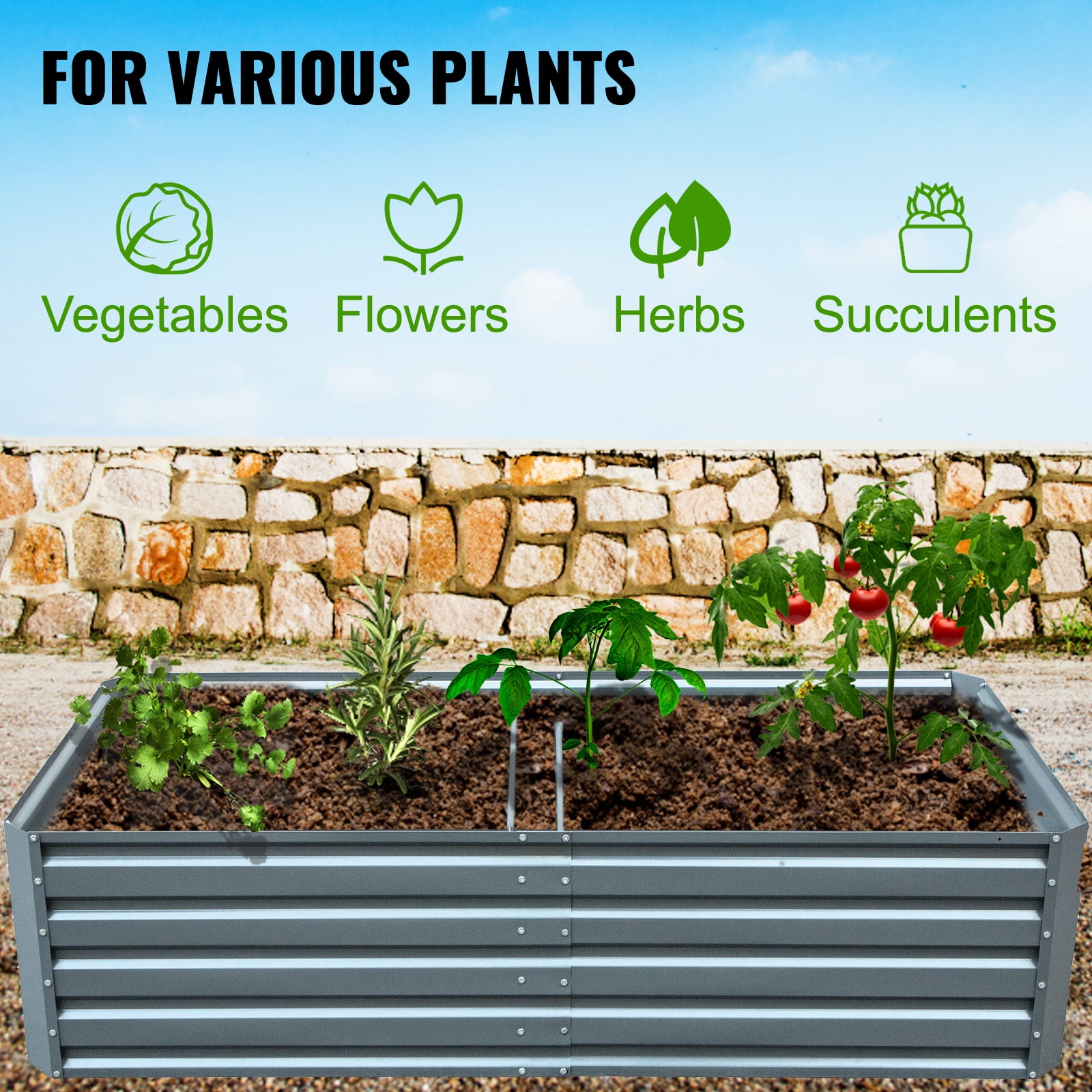 VEVOR Galvanized Raised Garden Bed Planter Gray Box for Plant Flower Vegetable