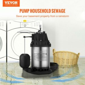VEVOR Submersible Sump Pump Water Pump 1/2 HP 4320GPH Cast Iron Steel Basement