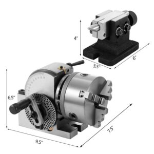 VEVORbrand Dividing Head BS-0 5Inch 3 Jaw Chuck Dividing Head Set Precision Semi Universal Dividing Head for Milling Machine Rotary Table Tailstock Milling Set