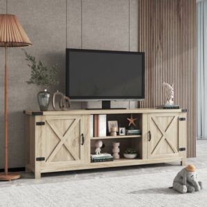 Vineego Farmhouse Tv Stand 58” Rustic Barn Two-Door Tv Stand for TVs up to 65″,Oak