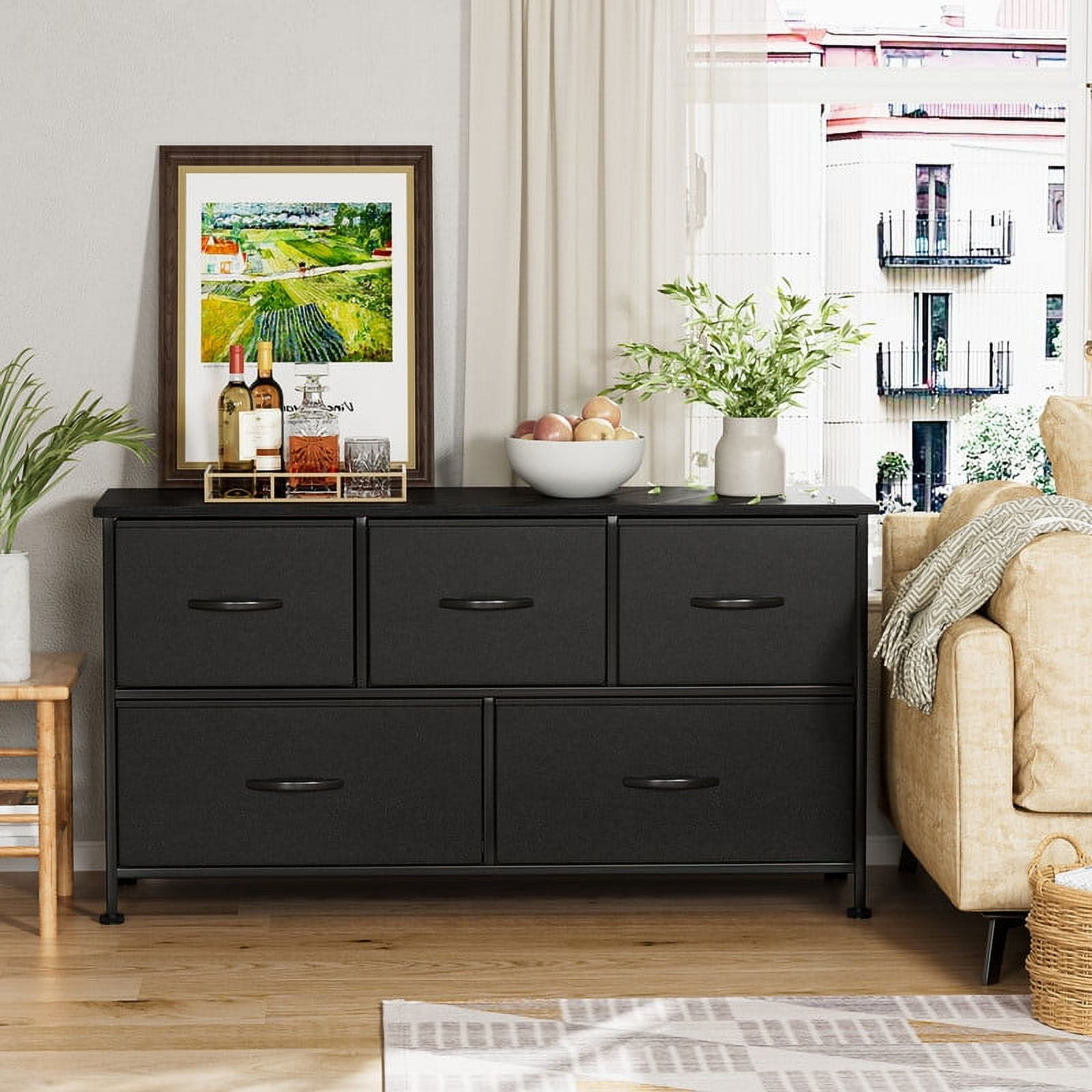 Vineego Dresser for Bedroom with 5 Drawers, Wide Chest of Drawers, Fabric Dresser,Black