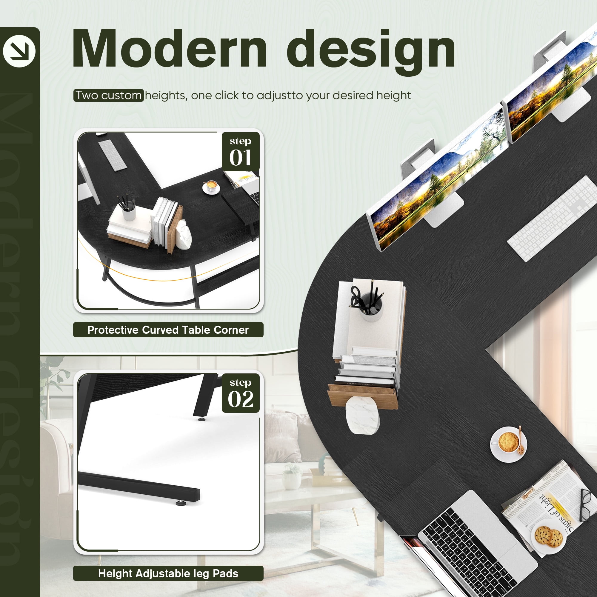 Vineego L-Shaped Computer Desk Modern Corner Desk Home Office Writing Sturdy Workstation with Movable Table, Black