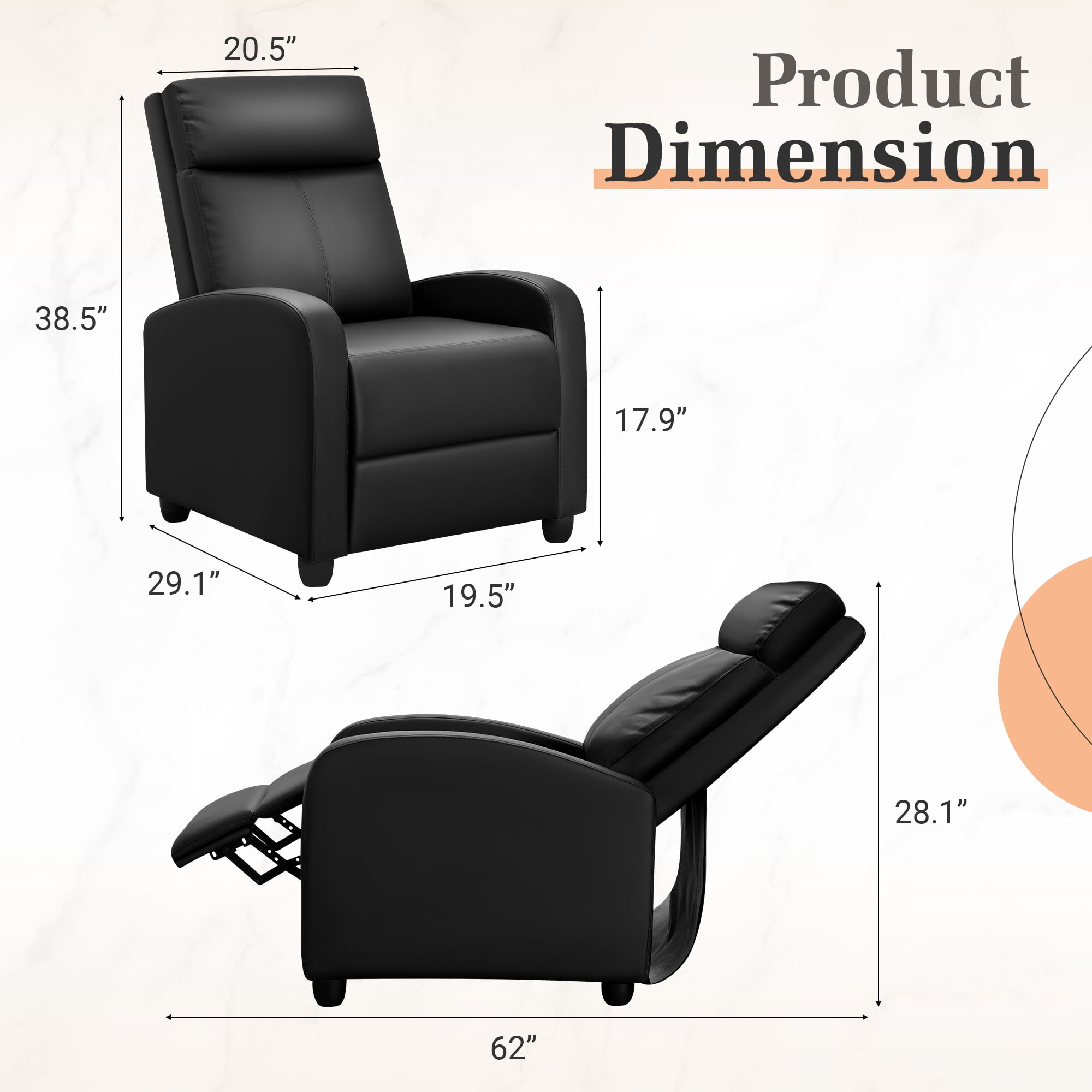 Vineego Faux Leather Office Manual Pushs Adjustable Backrest Recliner Chair, Black