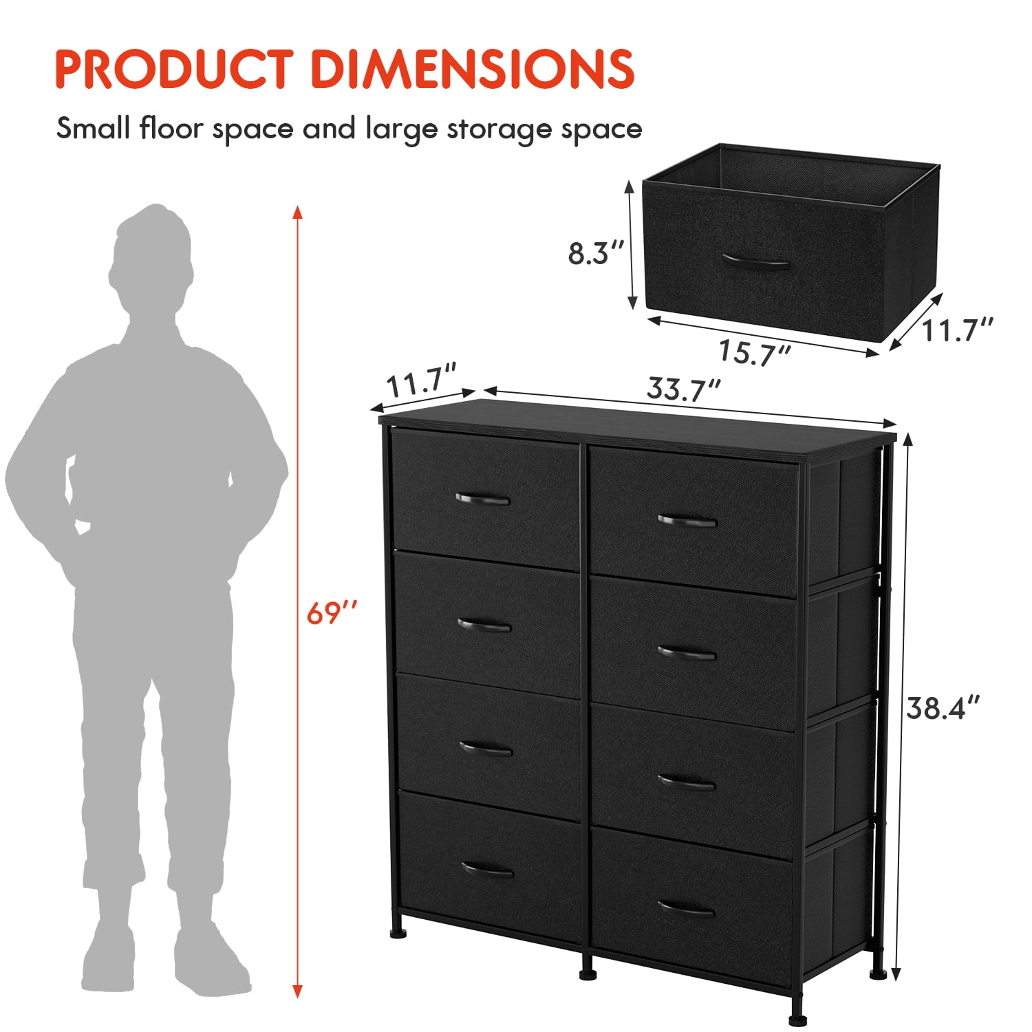 Vineego Dresser for Bedroom with 8 Drawers, Wide Chest of Drawers, Fabric Dresser,Black