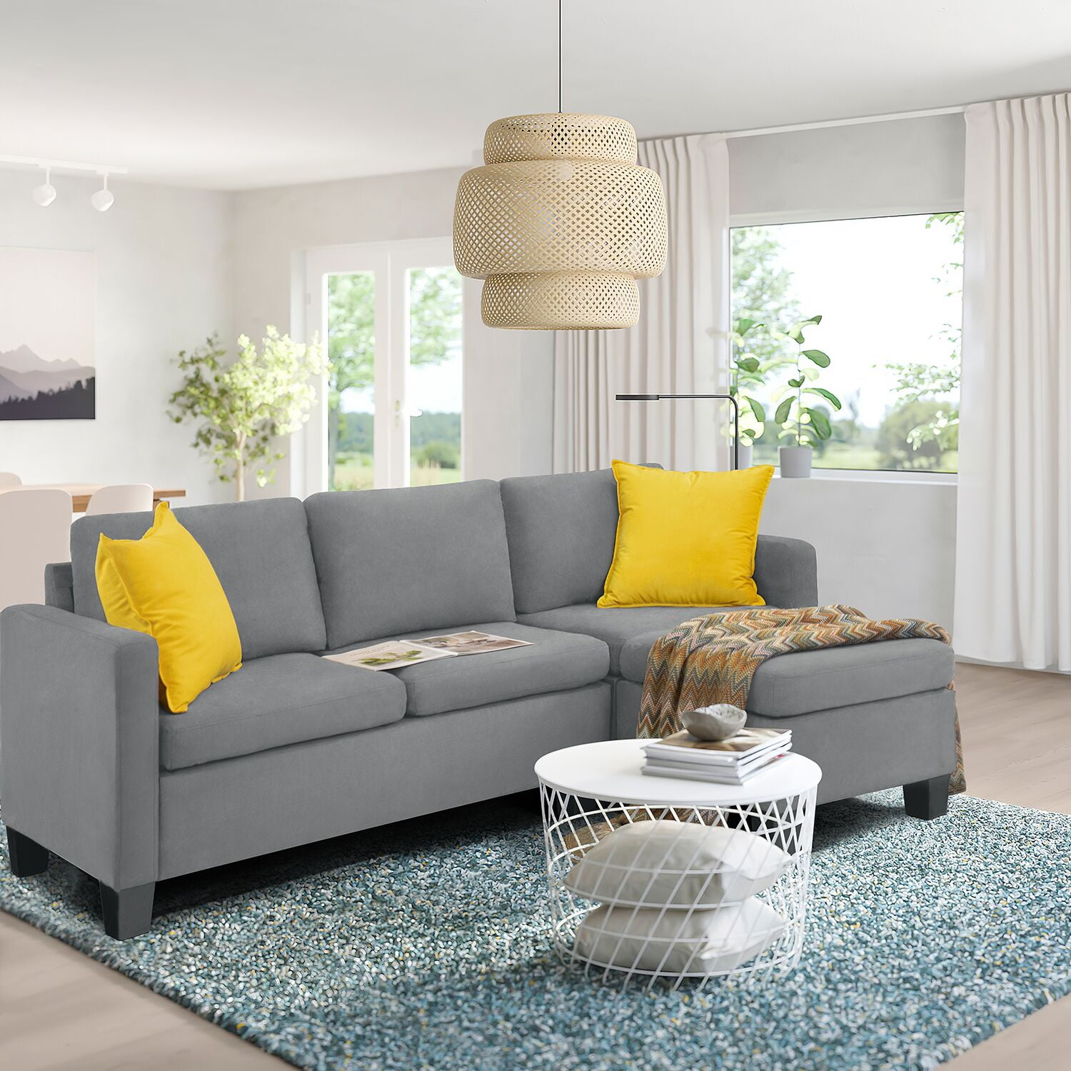 Vineego L-shaped Sofa Suede Fabric Convertible Sectional Sofa with Reversible Chaise 3-Seat Modern Living Room Sofa with Ottoman,Gray
