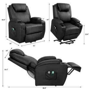 Vineego Power Lift Recliner Chair PU Leather for Elderly with Massage,Black