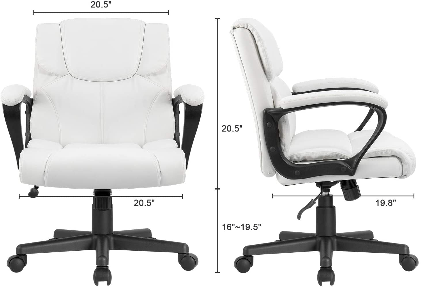 Vineego Mid-Back Office Desk Chair Executive Adjustable Swivel Task Chair PU Leather Conference Chair with Armrests,White