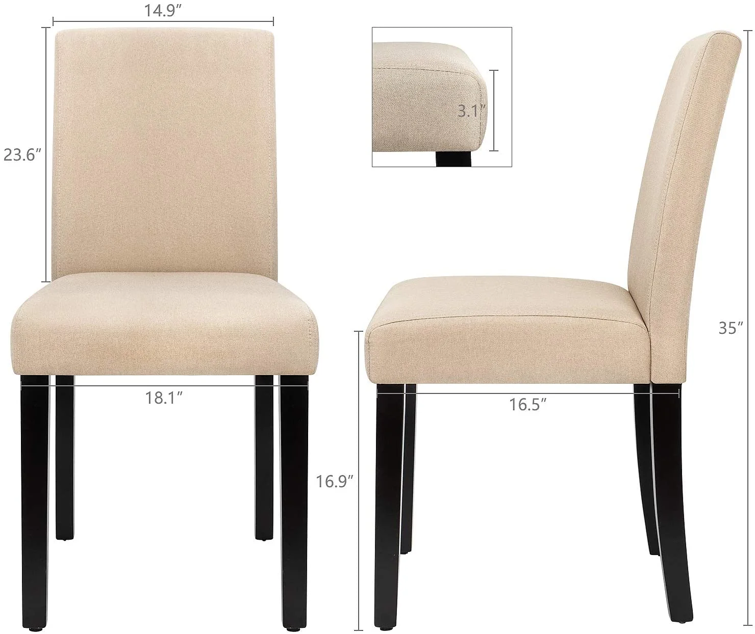 Vineego Mid Century Polyester Fabric Dining Side Chairs, Beige (“Set of 4”)