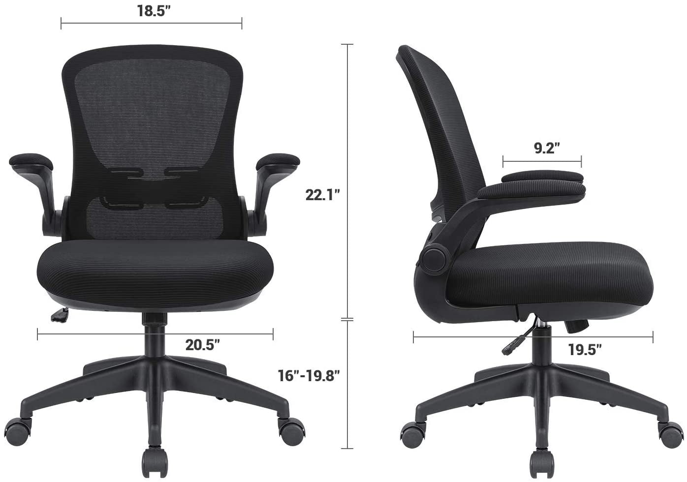 Vineego Mid-Back Mesh Office Chair with Lumbar Support Adjustable Height Office Desk Chair with Flip-up Arms, Black