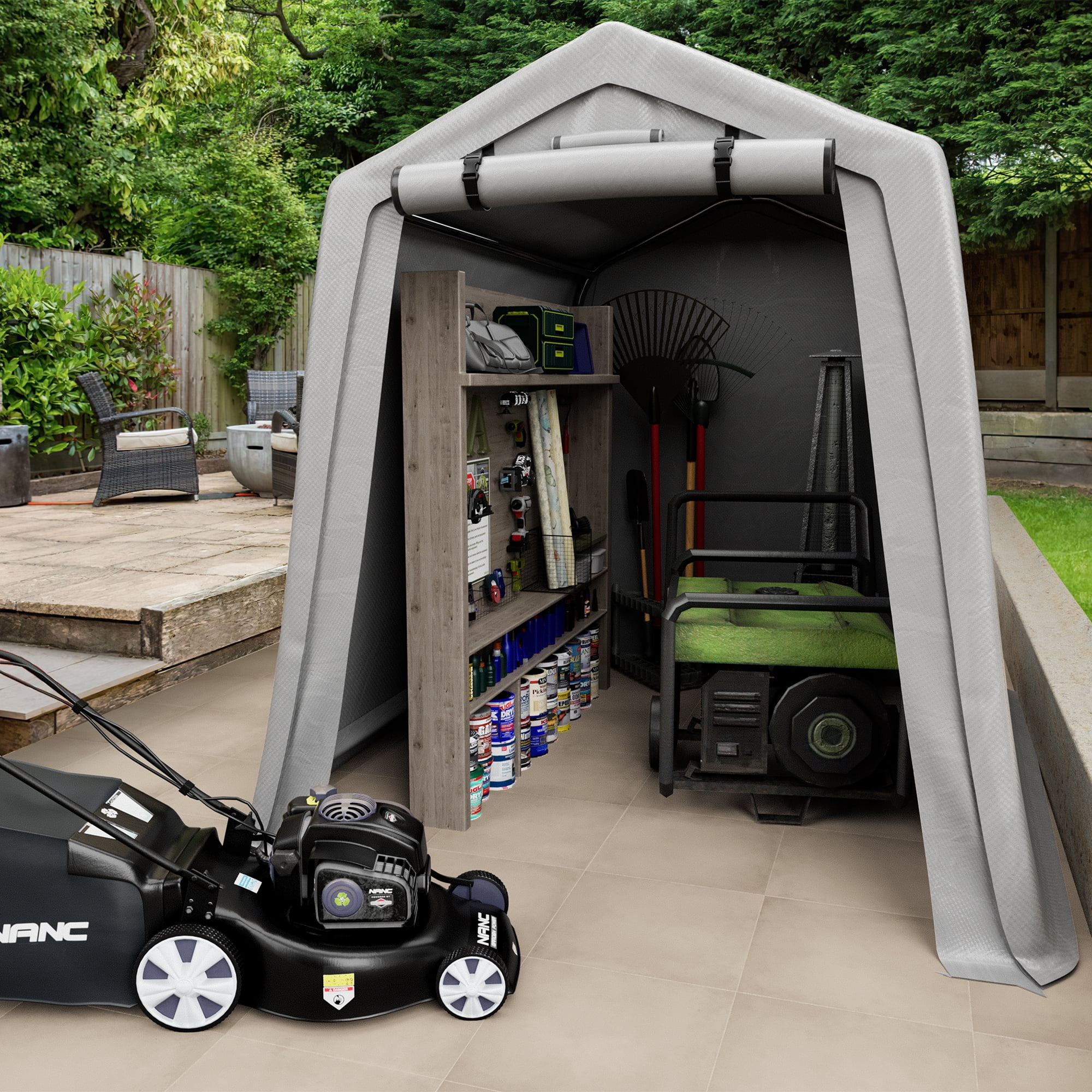 $99.64Vineego convenient outdoor storage shed is made of solid steel and a high quality tarp. The frame is secured with hooks and inserted underneath, making it stable for use in different weather conditions. It’s not just a bike shed or motorcycle shed, you can also house small lawn mowers, wood, and a variety of planting tools. All in all, it is a multifunctional storage shed that will bring convenience to your life