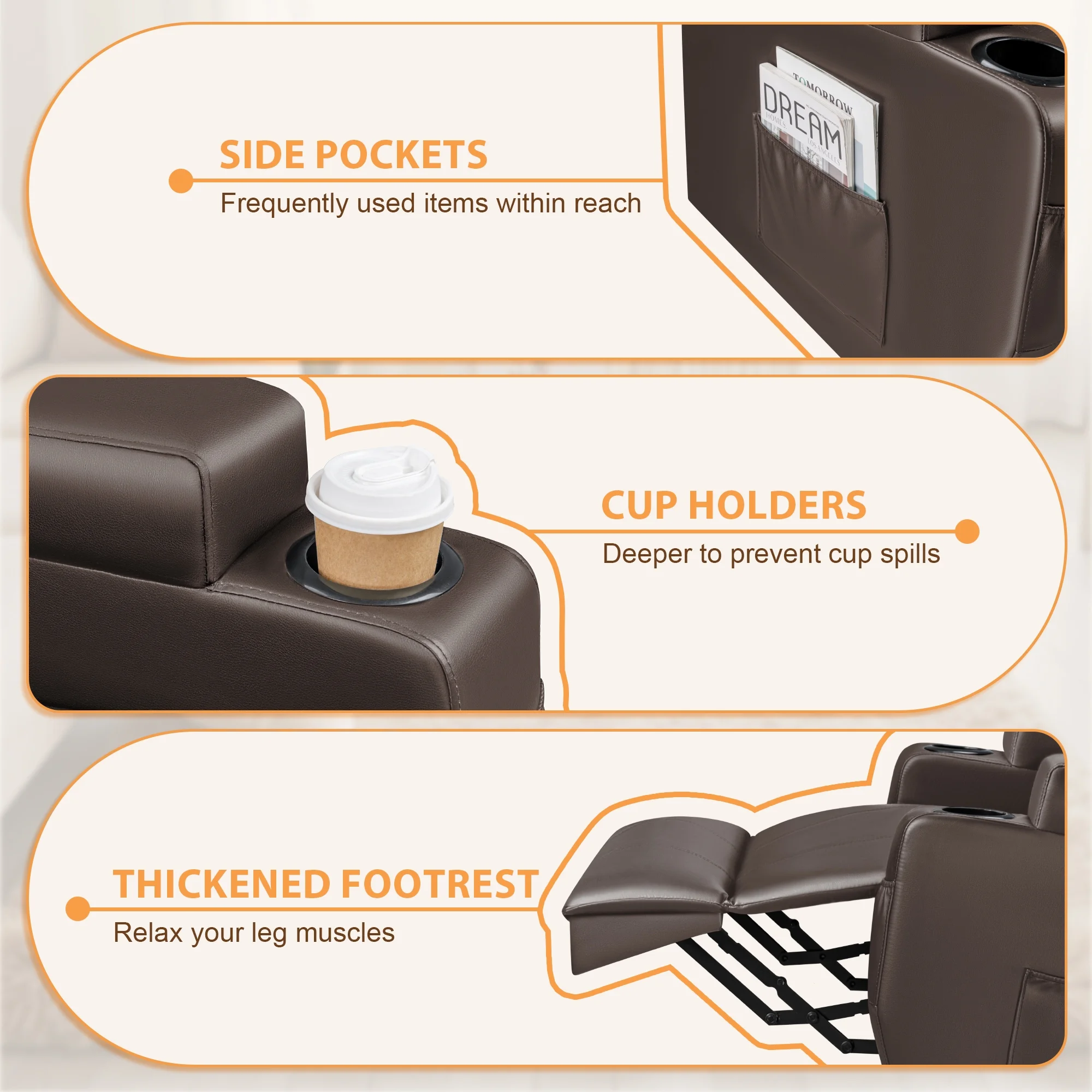 Vineego Recliner Chair,with Footrest Push Back,Faux Leathe,Khaki
