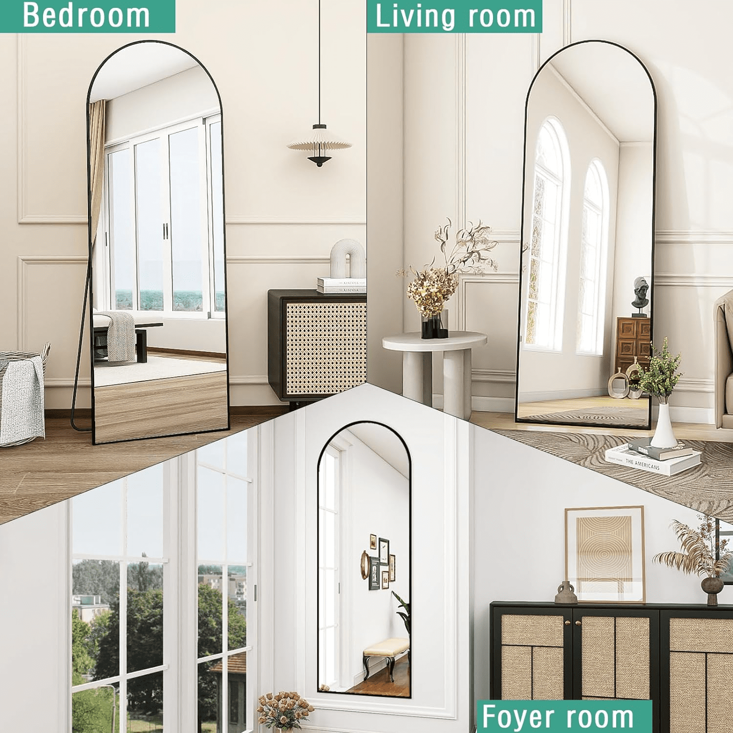 VLUSH 64″x21″ Arched Full Length Mirror, Standing Floor Mirror Hanging or Leaning, Wall Mirror Aluminum Thin Frame for Bedroom (Black)