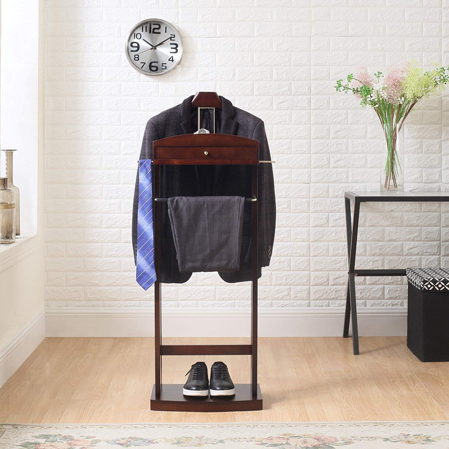 $115.45Features finely crafted piece of furniture. Solid wood construction. 20 in. W x 14 in. D x 46 in. H (18 lbs.). The Milan Wardrobe Valet encompasses the functionality you need and the style you want. It keeps your clothing wrinkle-free and your personal items organized in large compartments. It’s elegance is user to stand the test of time.You’ll be proud to showcase for years to come.