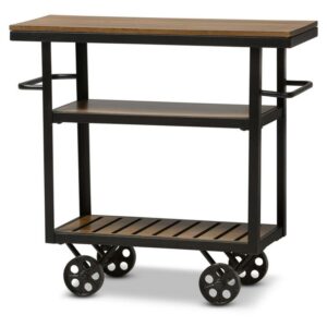 Baxton Studio Antique Black Textured Finished Metal Distressed Wood Mobile Serving Cart