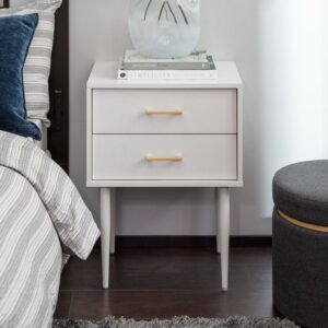 Walker Edison Mid Century Modern 2 Drawer Nightstand, White