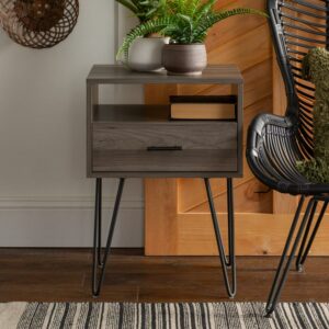 $159.09Create a bedroom that matches your style with the Walker Edison Mid-Century Modern 2-Drawer Wood Nightstand. Use the vertical open shelf to store your favorite novels and the horizontal shelf for jewelry or remotes. The two closed-storage drawers are perfect for tucking away the items you want out of sight. Invite a mid-century modern feel with the retro-inspired metal hardware and tapered legs. This piece also functions as an end table for those looking to elevate their living room. You can upgrade the look of your home in sustainable style, due to this piece’s construction of responsibility harvested pine wood. Pair with the Walker Edison Mid-Century Modern 6-Drawer Wood Dresser for a cohesive look.