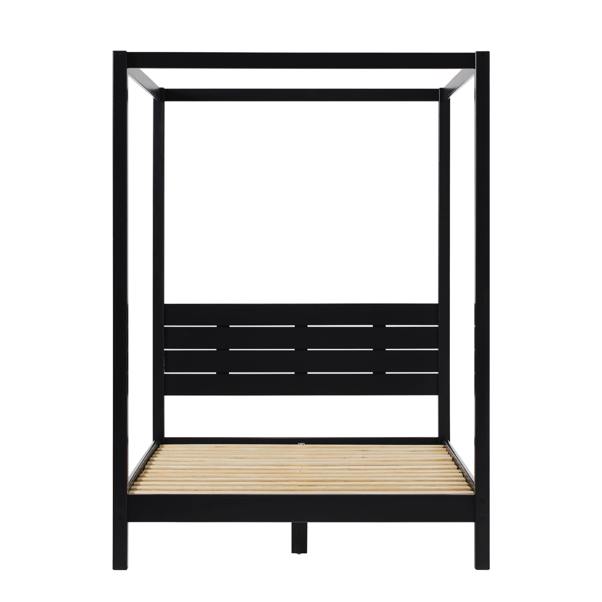 Walker Edison Minimalist Solid Wood Canopy Full Bed, Black