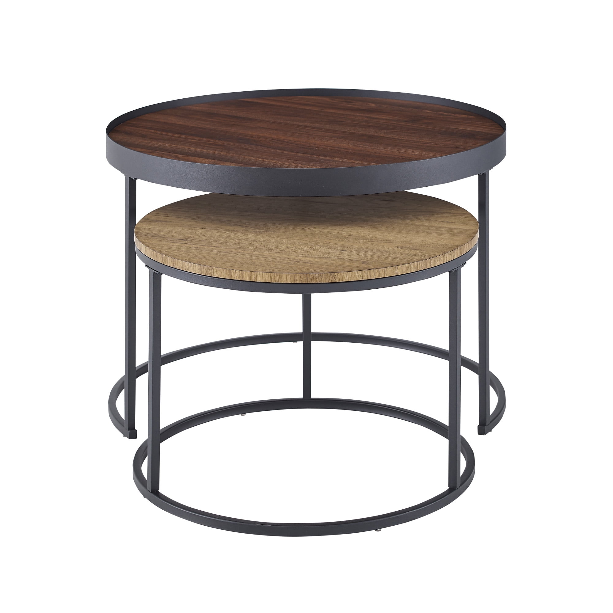 $188.34A versatile living room starts with Walker Edison Modern Round Nesting Coffee Tables with Tapered Legs. The three tables can tuck underneath one another create more room in front of the couch or accommodate small spaces. Spread the tables apart to fill out the area and add more surfaces to place drinks, snacks, or decorations. This trio of occasional tables features tapered metal legs for a subtle Mid-century modern touch to your contemporary living room.