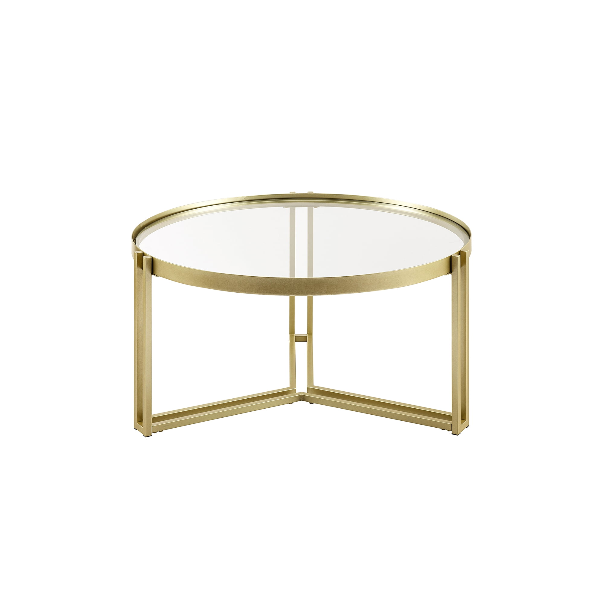 $117.82Give your living room an elevated look with this Walker Edison Modern Glam Round Glass Coffee Table. With its stylish gold and glass finishes, this table will stand out as a beautiful focal point in your room. The round tabletop is perfect for displaying your favorite home décor pieces or to rest a glass of wine as you binge your favorite romcom. The Y-shaped metal base adds a touch of glamour to the piece while providing sturdy support. This table is made from painted metal and tempered safety glass, making it durable and eye-catching.