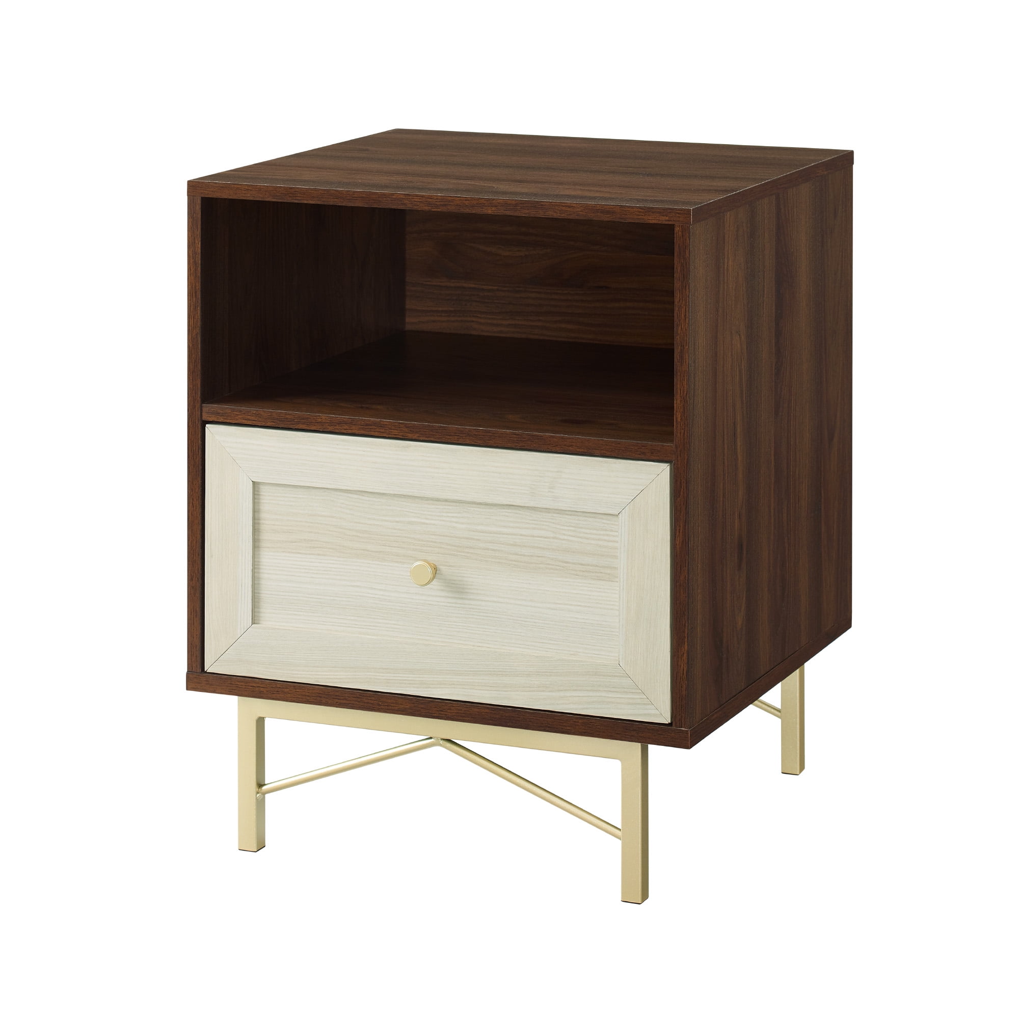 $50.73Incorporate the Walker Edison Modern Single Drawer Nightstand into your bedroom or guest room for sophisticated style. The painted gold hardware and eclectic base provide a contemporary look to elevate your private sanctuary. Tuck nightly essentials within the single drawer for easy access at bedtime. The open cubby is the perfect home for books and journals within close reach. The warp-resistant MDF wood, durable laminate, and powder-coated steel build is made to last in your forever home or first apartment. Pair with the matching dresser for a full set.