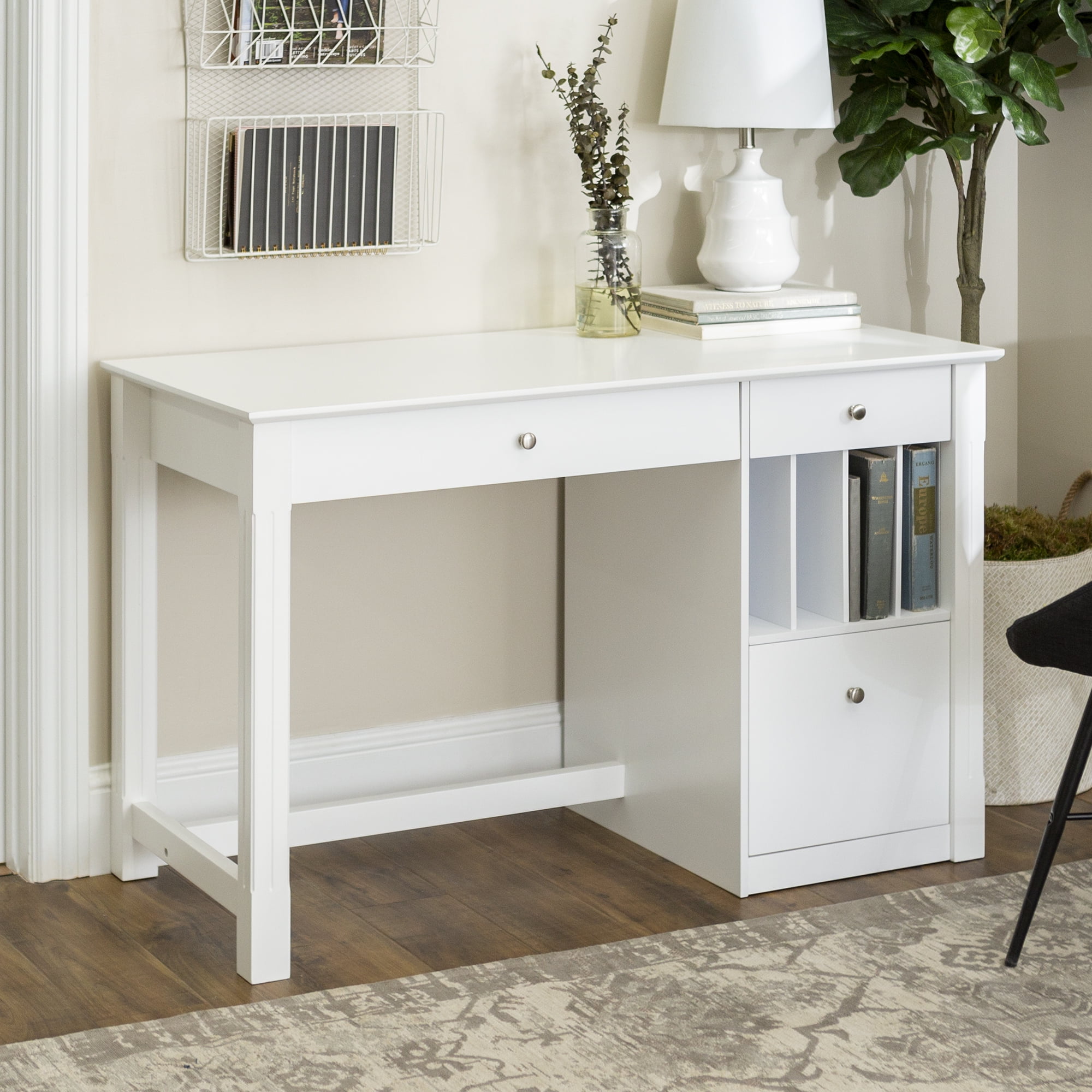 Walker Edison Modern Wood Computer Desk with Keyboard Tray and Drawers, White
