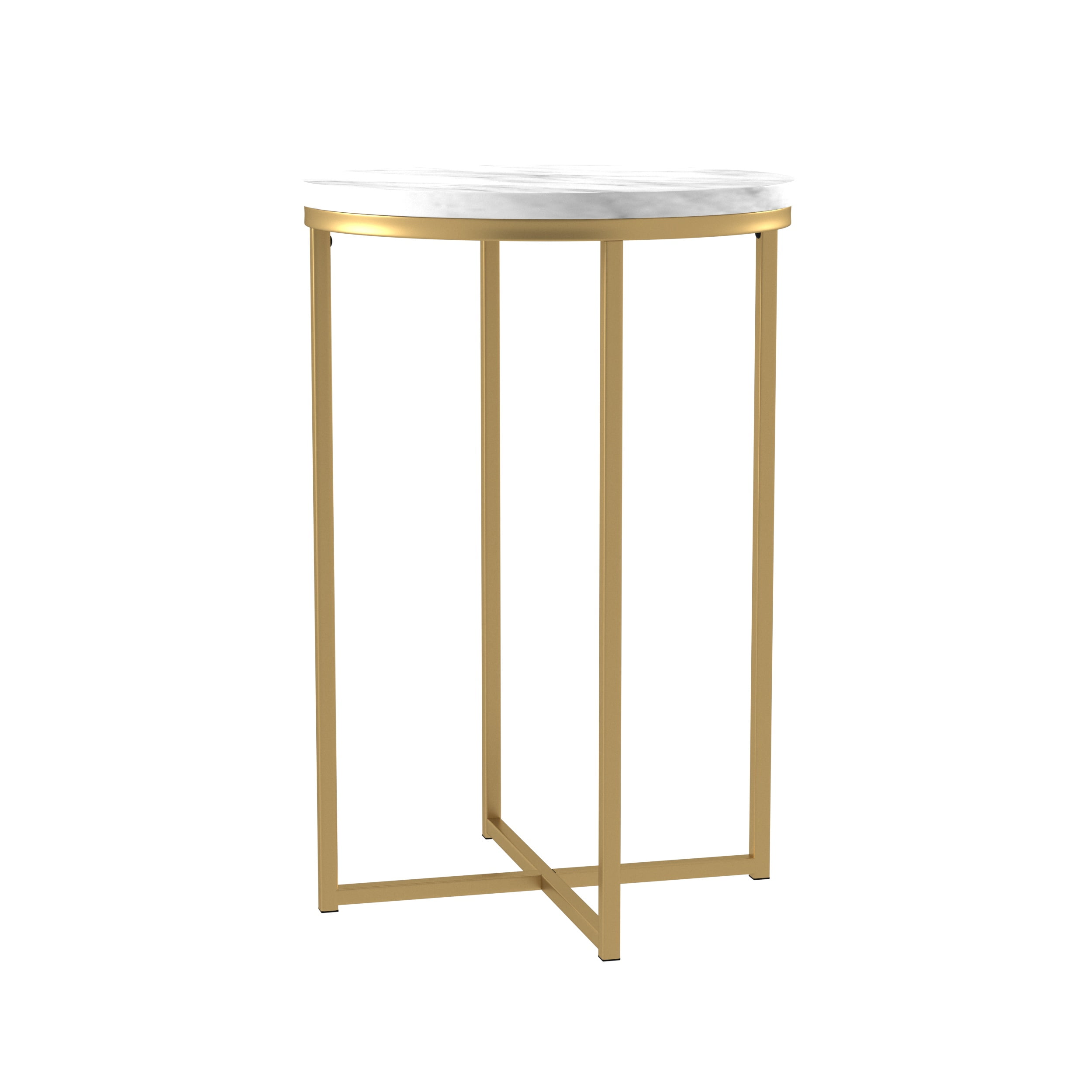 Walker Edison Modern Glam Round End Table, White Faux Marble/Gold