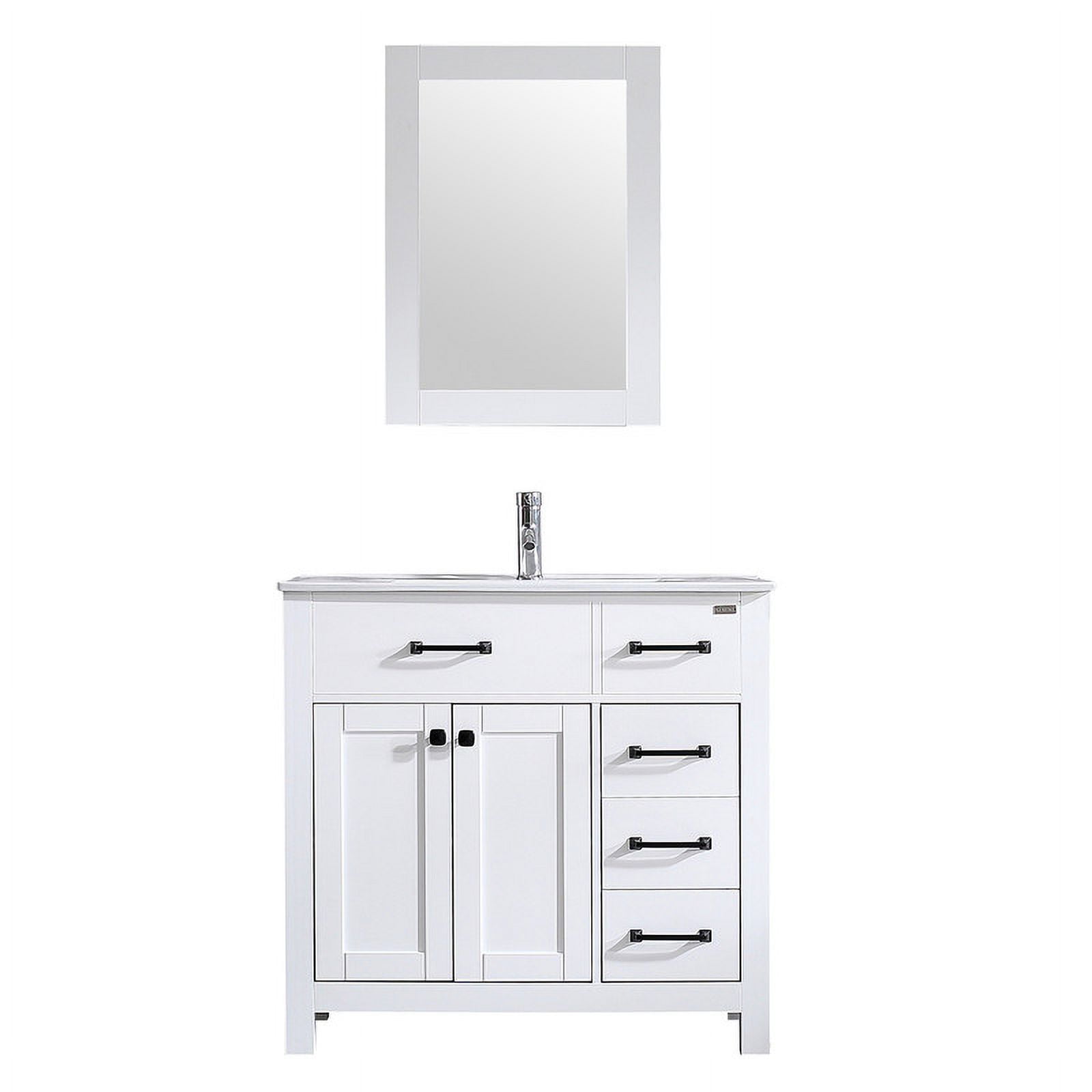 Walsport 36″ Luxurious Bathroom Vanity with Sink Top, Modern Bathroom Vanities with 2-Door and 5 Drawers Cabinet , Solid Wood Bathroom Cabinet with Undermount Ceramic Sink, White