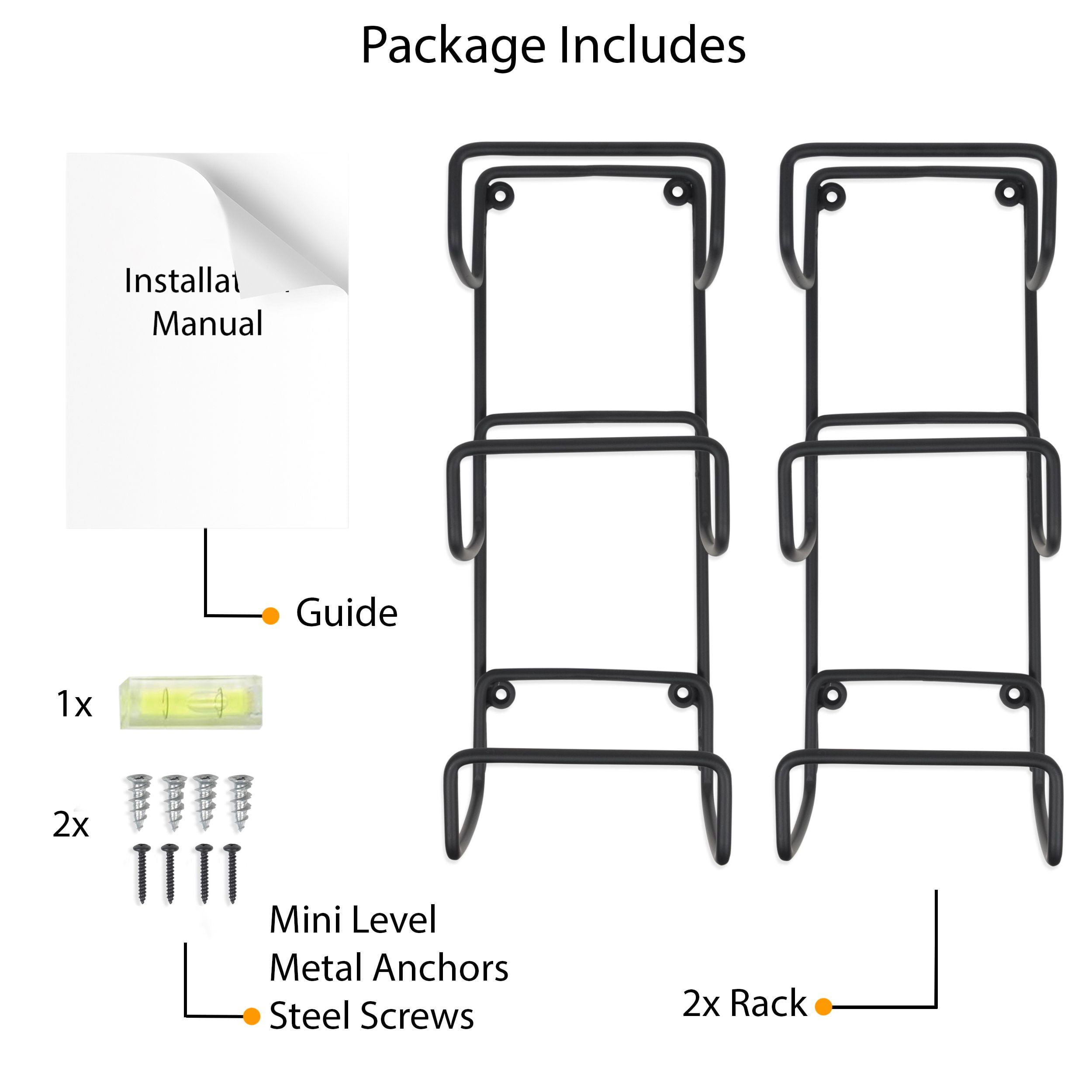 Wallniture Moduwine Wine Rack Wall Mount, Wrought Iron 6 Sectional Bottle Holder, Set of 2, Black