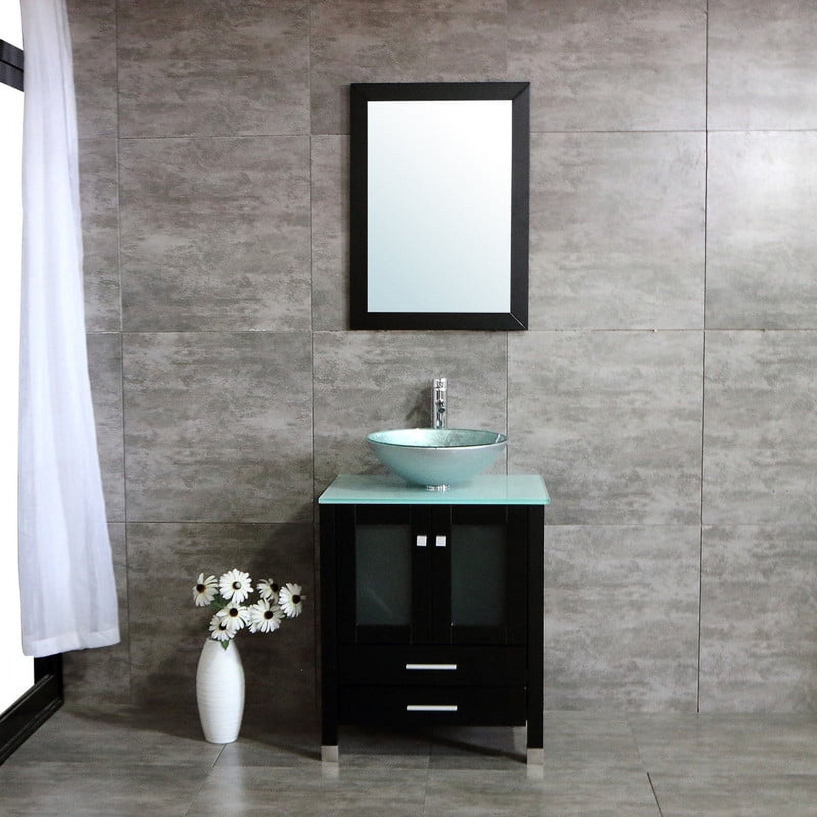 Walsport 24″ Luxurious Bathroom Vanity and Sink Combo Cabinet with Silver Glass Vessel Sink and Faucet Pop Up Drain,Black