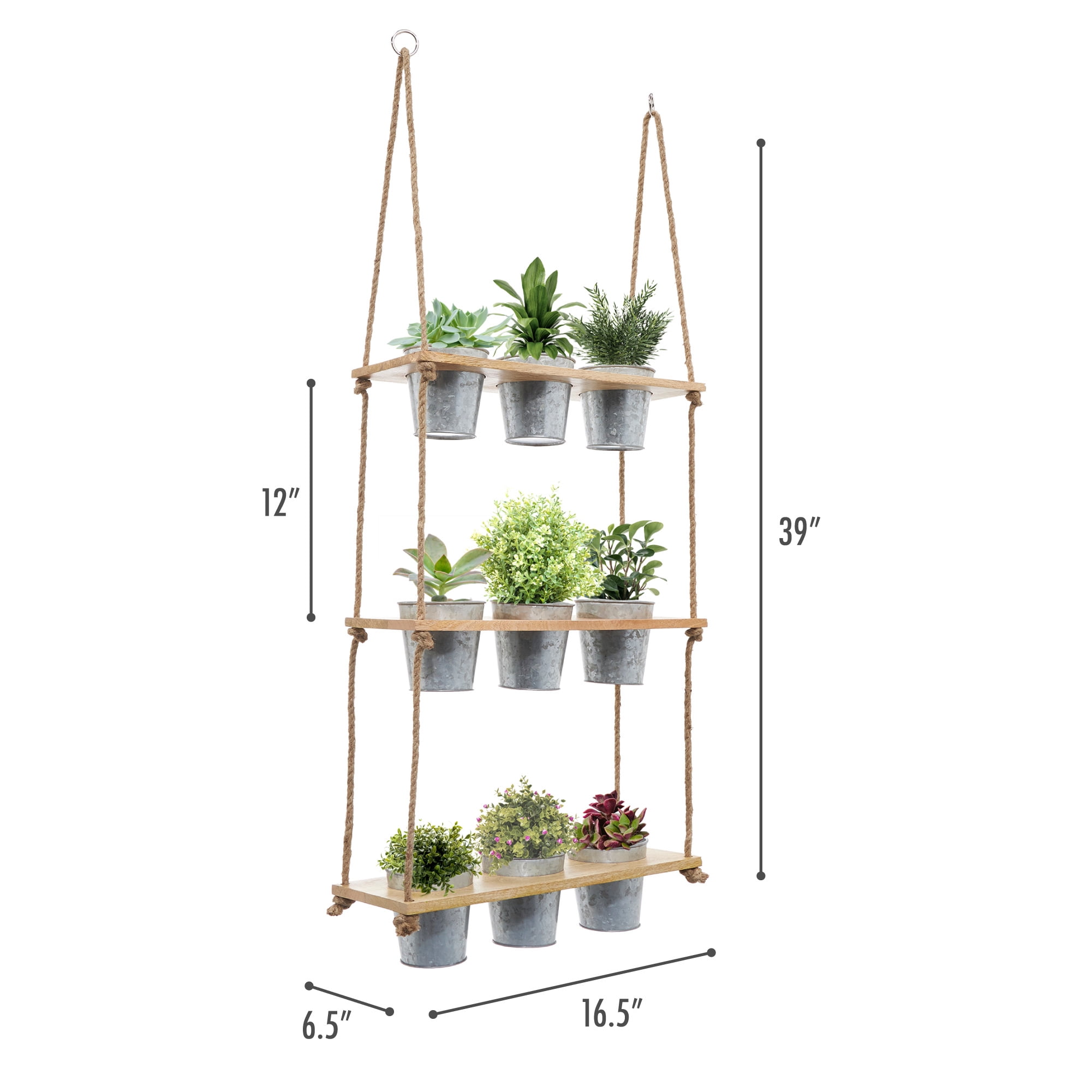 Wall Hanging Herb Planters, 3 Tiered Vertical Planter Shelf with Metal Pot Set, Indoor Garden, Wood Herb Garden for Kitchen, Vertical Hanging Planters Wall Hanging- Parent (Galvanized)