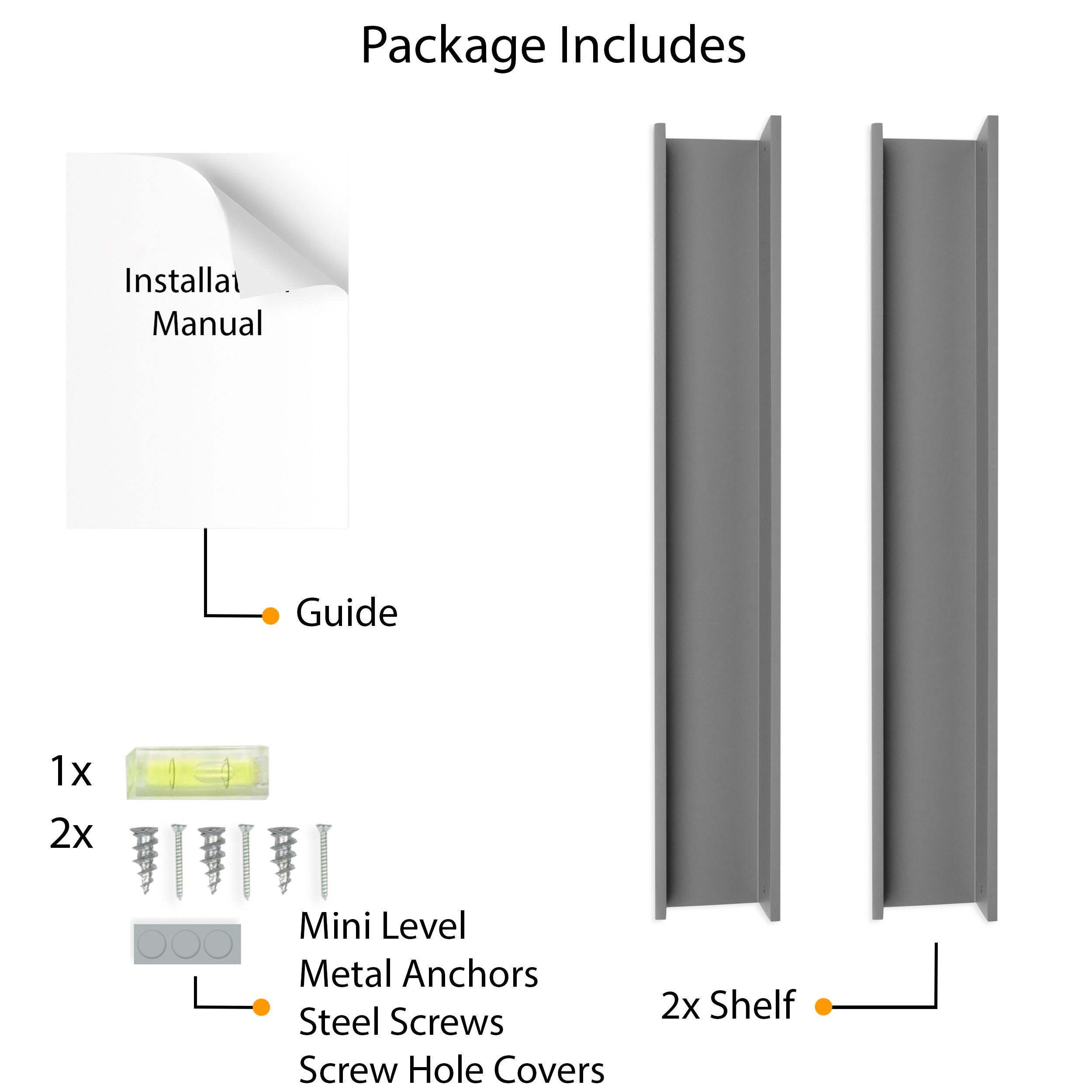 $51.59Add excitement and dynamic character to your kids room with Wallniture DENVER wood wall shelves for kids room: Perfect for storing child’s books and toddler toys! 34″ picture ledge shelves that are as practical as decorative will be a lifesaver. Clear clutter and give your child more space to use with our nursery bookcases. Consider using wide dark gray floating bookcases to create a cozy and entertaining room decor. Create smart organization and storage solution in kids bedroom. Take advantage of any unused space in your nursery room by mounting DENVER baby wall bookcase set. Each of these 5″ wide floating ledge shelves for nursery is an excellent option to create a stylish toy storage corner. Easily display Montessori toys, small plushies, action figures, puzzles, fairy tales, treasure, coloring books, arts and crafts supplies, Crayola, picture frames, baby toys, or collectibles. DENVER wall bookshelf for kids room has versatile usage to fit in every room by using them in different and practical ways. Get creative and consider using 34” wall mount display shelf dark gray set to create a unique gallery wall in your living room. You can also utilize set of 2 modern decor shelves as spice rack for that little wall space between the cupboard and countertop.