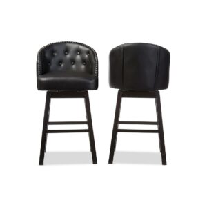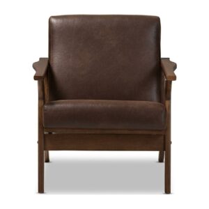 Baxton Studio Bianca Mid-Century Modern Walnut Wood Dark Brown Distressed Faux Leather Lounge Chair