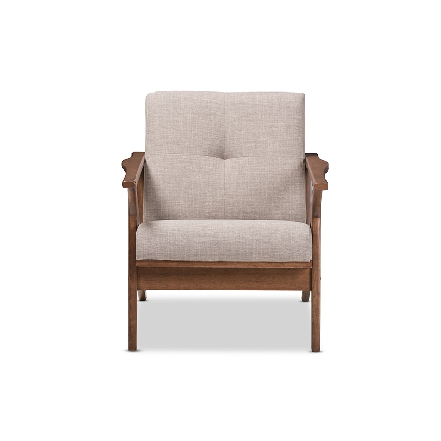 Baxton Studio Bianca Mid-Century Modern Walnut Wood Light Grey Fabric Tufted Lounge Chair
