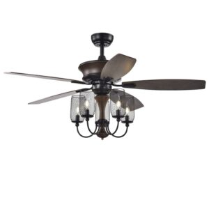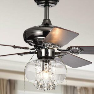 Warehoude of Tiffany Slatin 52” Black Chandelier Reversible Ceiling Fan with Mesh Shade