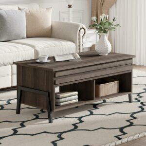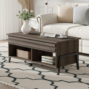 WAMPAT Mid-Century Lift Top Coffee Table for Living Room, Rising Tabletop with Storage Compartment, Brown