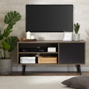 $168.55Suited for the modern farmhouse and industrial spaces alike, this TV stand is a versatile pick for the living room. Crafted from manufactured wood, it features a pair of barn-style doors that slide shut for added appeal, while metal hardware completes the aesthetic. Adjustable shelves give you space to set up media players and keep your collection of DVDs on display, and cable management cutouts in the back help you keep your space clutter-free.