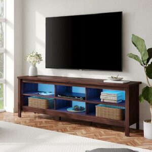 Wampat TV Stand for 75 inch TV Wood Media Console Cabinet, TV Entertainment Center, Espresso, 70″