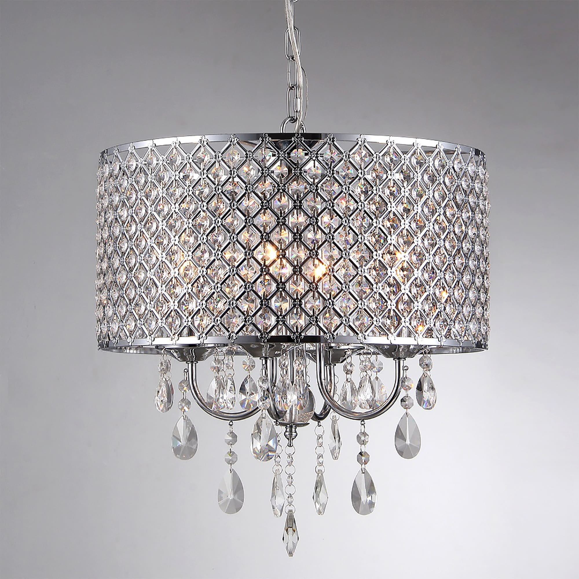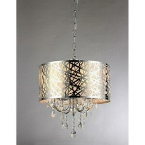 Warehouse of Tiffany 17″ Round Chrome Finish Crystal Chandelier with 4 Lights – 9′ x 17′ x 17′