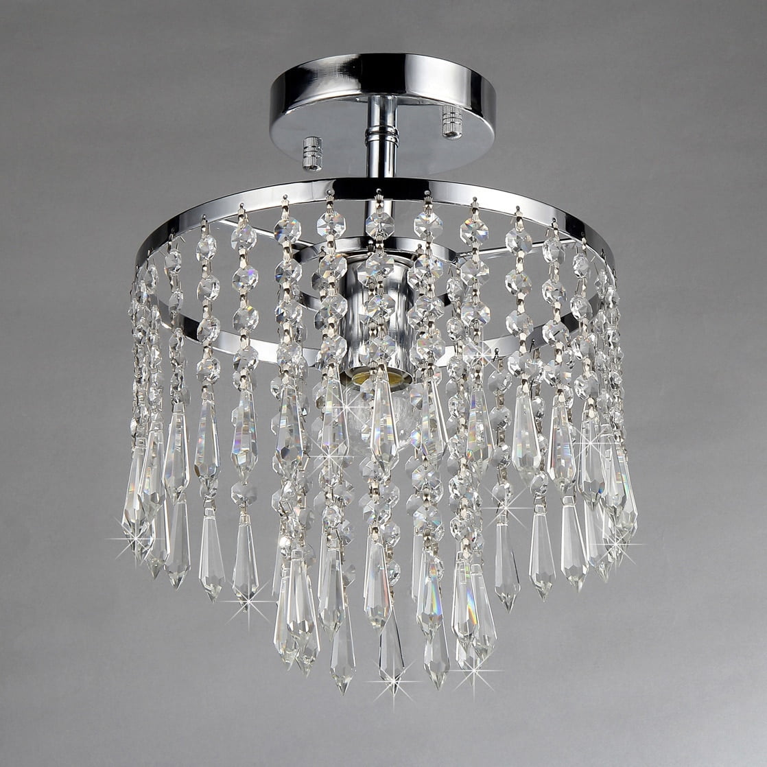 $42.98Perfect in contemporary or classical rooms, the Warehouse of Tiffany RL1382/1 Seek Crystal Chandelier is simply stunning. It features a sleek chrome base with rows of glittering crystal accents. Perfect in a small bedroom, guest bath, or in a grouping of others like it. Bulb not included.