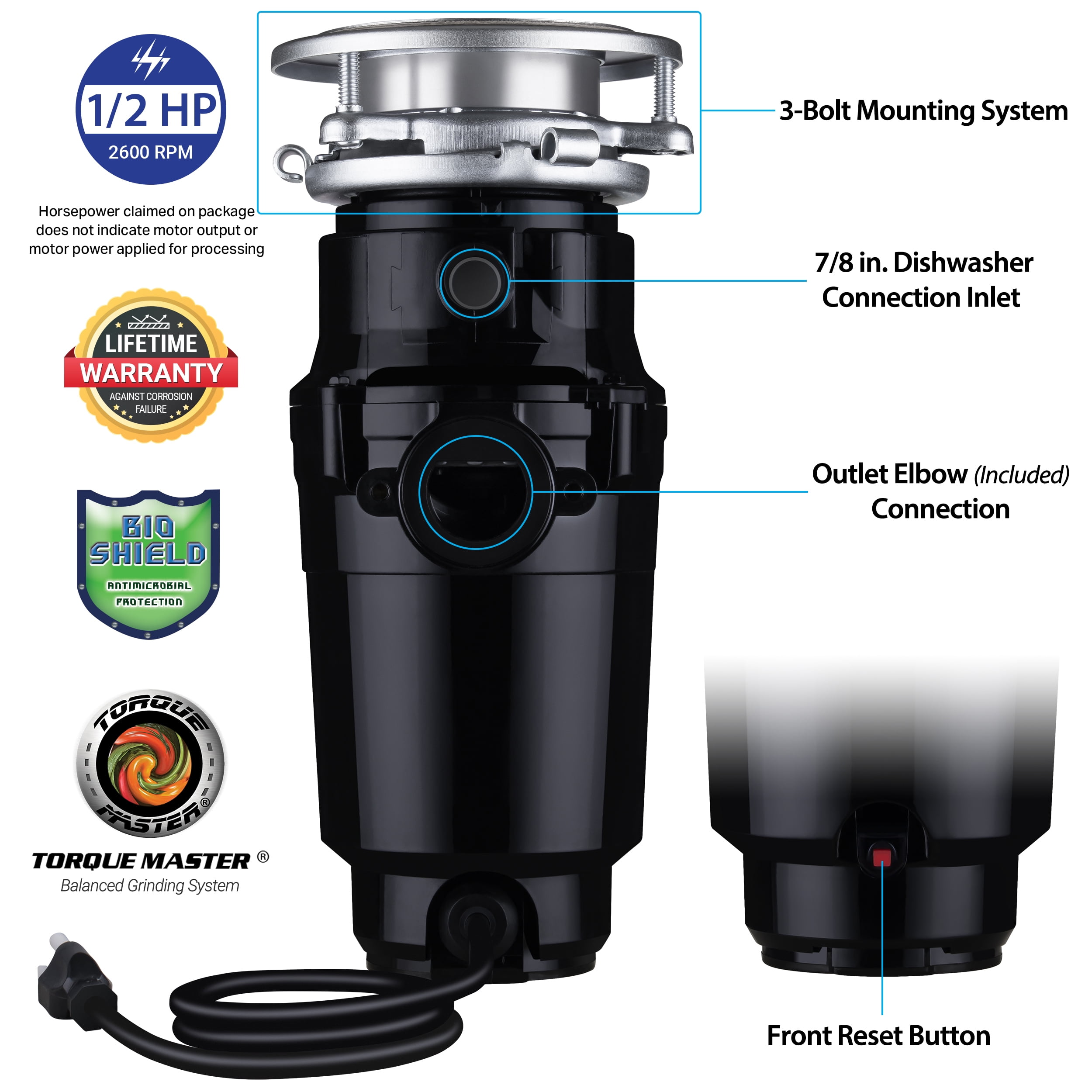 Waste Maid Economy 1/2 HP Continuous Feed Garbage Disposal with Attached Power Cord 10-US-WM-058-3B