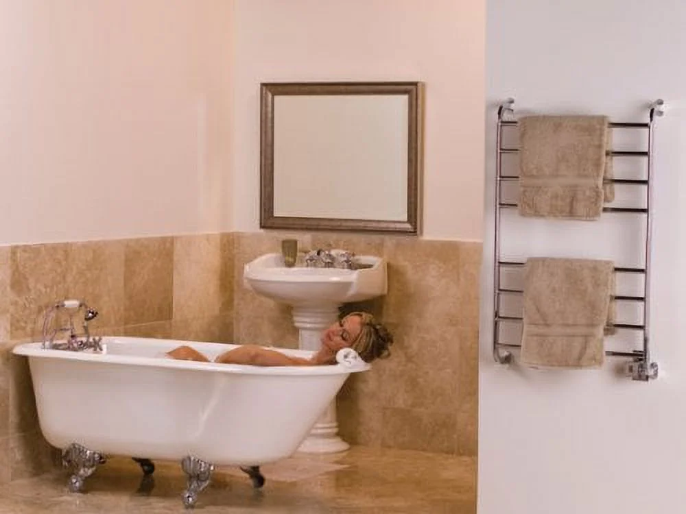 $235.15Original price was: $235.15.$161.55Current price is: $161.55.The Warmrails RTC Traditional Towel Warmer by Jerdon is a must-have bathroom accessory. This Warmrails Traditional Towel Warmer can be free standing or wall mounted, includes all instructions, and comes with a simple 7’ power cord and grounded plug, making it perfect for nearly any bathroom. The on/off switch is illuminated for easy access in the dark. For smaller bathrooms, or to clear up valuable bathroom floor space, the Warmrails RTC Towel Warmer comes with the ability to mount to almost any wall. All hardware is included for floor standing or wall mount option. No more having to worry about mildew or unpleasant odors from wet towels. The Warmrails Towel Warmer dries your towels faster than air drying, keeping everything fresh and warm. Imagine the luxurious feeling of stepping out of your bath or shower into a fresh, clean, heated towel. The chrome finished rails are designed to warm up in about 15-20 minutes, making sure that your towels can get dry and stay warm. The Warmrails Traditional Towel Warmer makes sure that you will always have a great spot to dry your towels and swimwear. Wall Mount Dimensions: 21”W x 3.75” D x 32.5”H. Floor Standing Dimensions: 21”W x 6.25”D x 34”H. Warmrails is the nation’s leading national brand of affordable towel warmers, offering a variety of towel warmers in five different styles. The product is designed to meet consumers’ needs in luxury and performance, all at an affordable price.