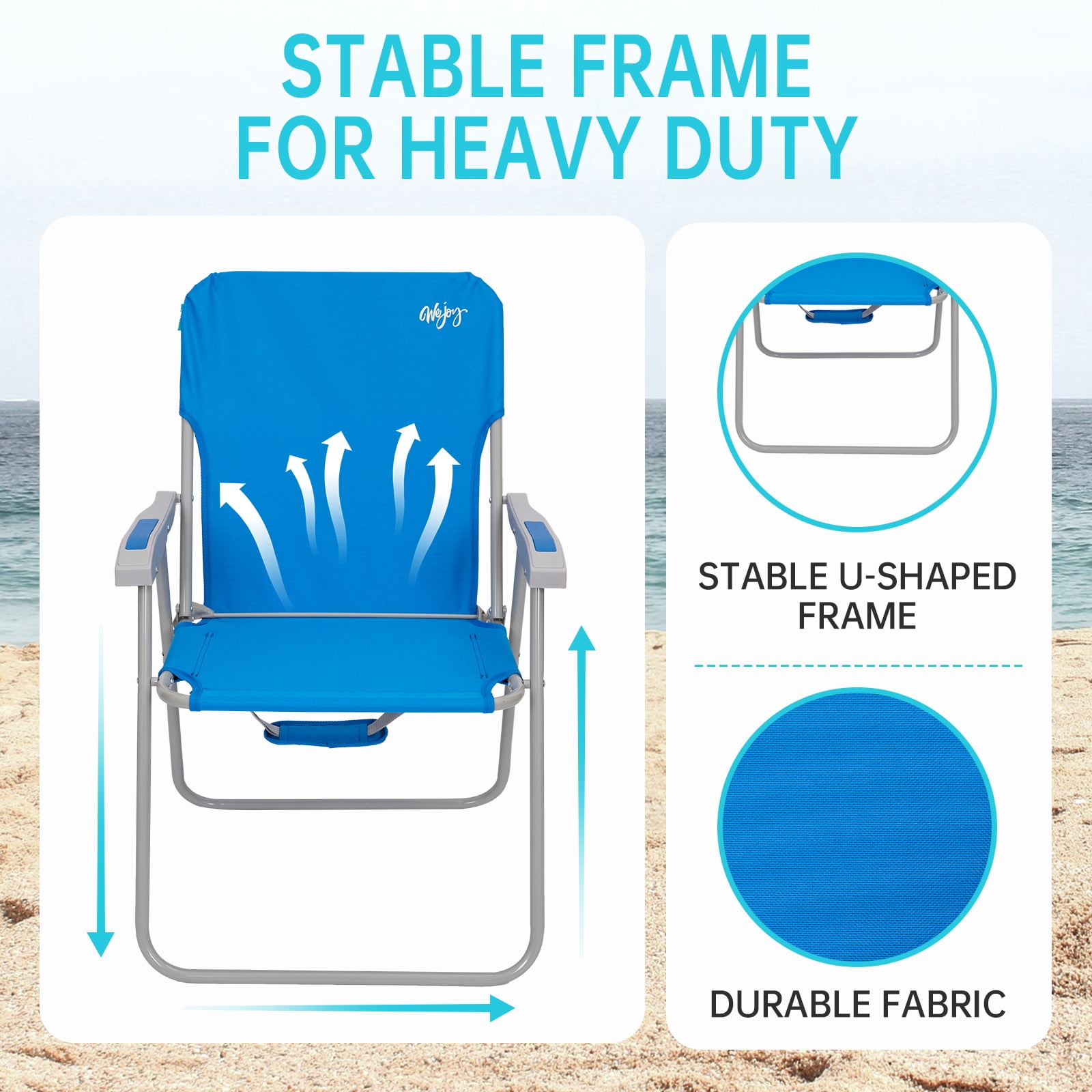 WEJOY High Sitting Beach Chair Outdoor Folding Lawn Chairs for Adults, Blue